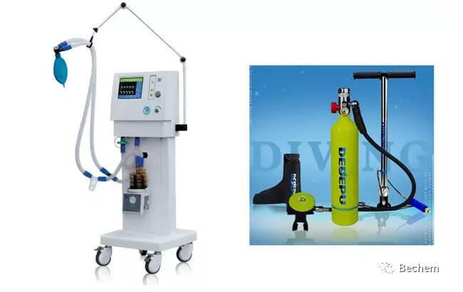 BECHEM很荣幸地为呼吸机产业做出了贡献,为阀门提供了Berulub OX-100 EP润滑脂产品。该润滑脂适用于氧气阀门和制氧机橡胶部件的润滑,适用于60℃温度下,氧气压强激增至140 bar的情况。该产品通常应用在潜水装置,呼吸机等设备。