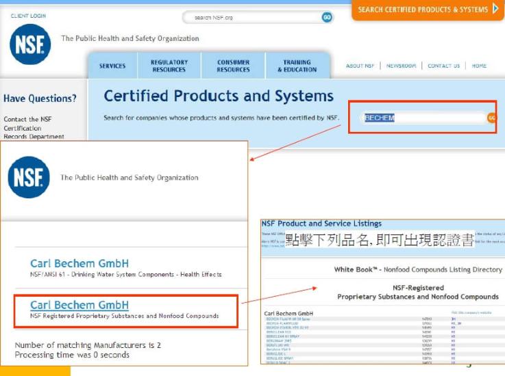 产品认证皆可在美国国家卫生基金会(NSF)的官网上查询~