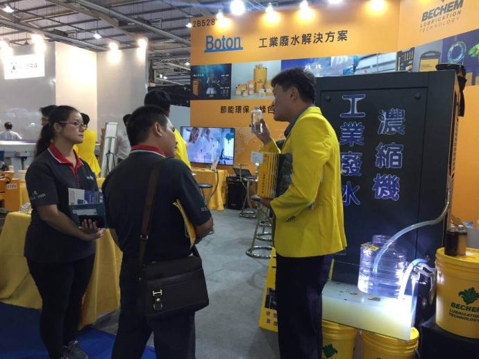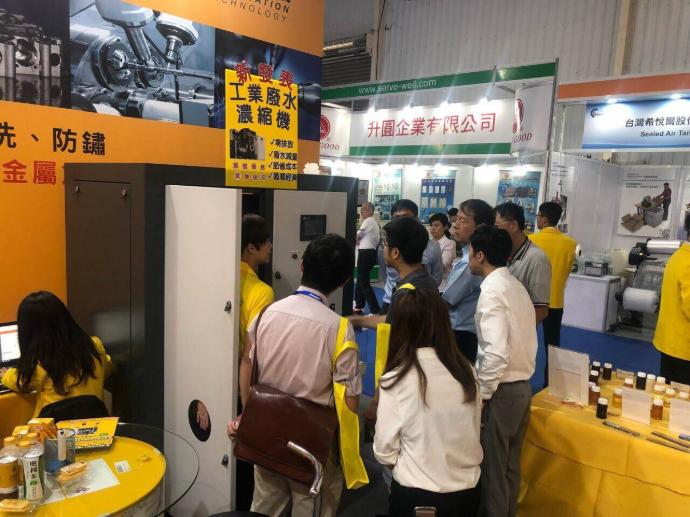 这次的展览,我们首次展出的工业废水浓缩机,在本次展览受到热烈的讨论。利用真空蒸馏的原理,将成份复杂的废液,分离纯化成浓缩液与蒸馏水,可有效降低废水处理成本,以达到经济及环保共存的目标!