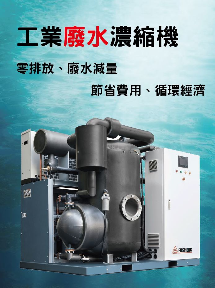 为了解决工业废水污染环境的乱象,台湾快密刀公司新发表采用高效率套卷式热泵压缩机的「FUSHENG工业废水处理机」,不用使用化学药剂,透过真空蒸发凝缩新技术,可将废水减量为原本的1/20,其余的回收水可再循环使用,达到零排放零污染的绿色环保目标,不仅是产业界处理工业废水的救星,也是环保设备的最佳利器。